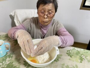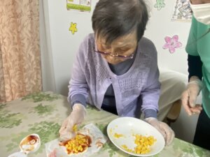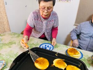 オーブンで焼きながら、「まだかな〜」と焼き上がりを楽しみにしつつ、口腔体操も頑張りました💪