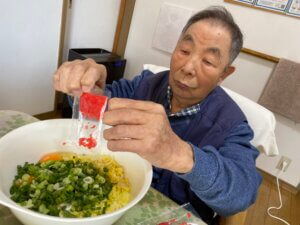 コンコンコンっとたまごを叩き、上手に割ってくださいました👏