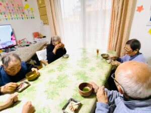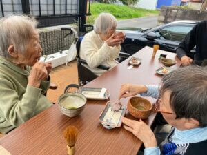 お茶とお茶菓子がそろったところで、みんなでゆったりとした時間を過ごしながら、美味しくいただきました♡