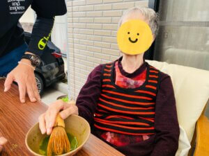 その後はテラスへ移動し、お抹茶を点てました🍵