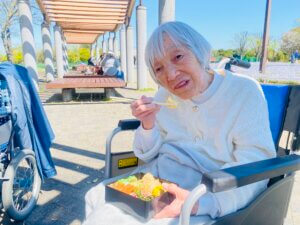 暖かい陽気の中、キレイなお花を眺めながらいただくご飯は格別✨