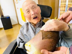 さらに、ご利用者様から「俺の竹やぶで取れたよ」「俺が掘ってきたんやぁ」と、立派なたけのこをいただきました✨