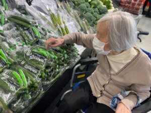 スーパーに到着すると、「どれがいいかな」「こっちがいいかな」と話しながら