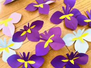 折り紙で作ったお花にはシールでアクセントづけ🌸