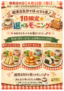 初めて東京・上野に喫茶店がオープンした日にちなんでいます♪