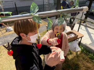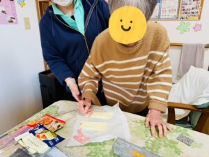 半分に折る係、三角に折る係など、みんなで分担して協力しながら進めていきます(๑>◡<๑)