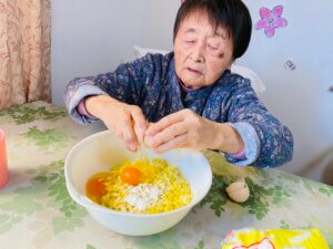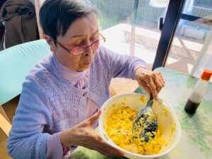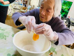 コンコンコンっとたまごを叩き、上手に割ってくださいました👏