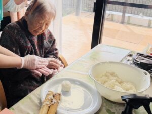 餡を手に取り、くるくると丸めたり、手のひらで優しく伸ばしたり…