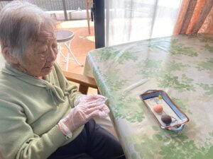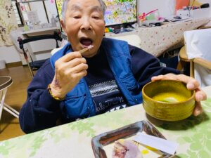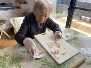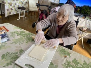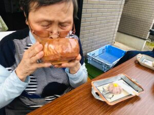 オーブンで焼きながら、「まだかな〜」と焼き上がりを楽しみにしつつ、口腔体操も頑張りました💪
