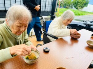その後はテラスへ移動し、お抹茶を点てました🍵
