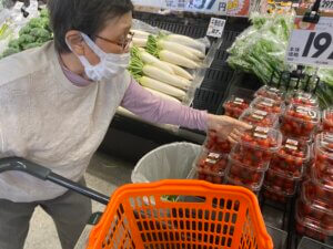 スーパーに到着すると、「どれがいいかな」「こっちがいいかな」と話しながら
