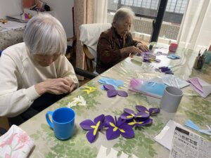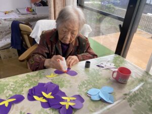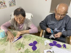 今日は午前中、みんなで折り紙を使って菖蒲の花づくりをしました✨
